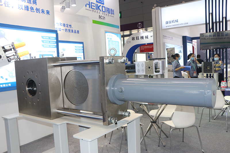 PLA降解材料用雙柱換網器需要通過嚴格控制主體和柱塞間間隙,通過剛性材料面-面密封可以實現優異密封性和耐久性;PLA雙柱換網器流道結構采用雙通道橢圓形式設計,可實現大過濾面積,具有更高抗壓能力;正常生產時雙通道同時過濾更換濾網時一個柱塞推出主體后更換濾網經引料排氣后,馬上退回工作位置,然后對另外一個柱塞進行交替更換,解決了換網過程中引入空氣造成的生產中斷或中空粒子。